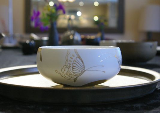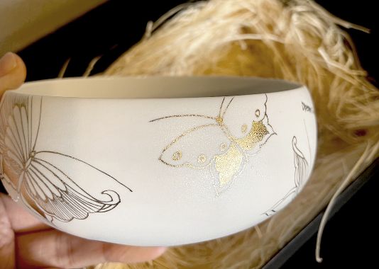 白磁に銀彩で描く繊細なデザインには、一碗ずつに生命が降り注がれます。